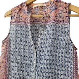 Blue Pink Tunic Boho Blouse Simi Sheer Lightweight Top Size Small