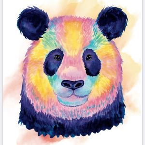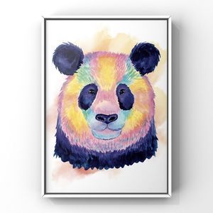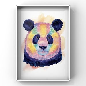 Blue Pink Yellow purple watercolor Panda portrait wall art home decor poster print.