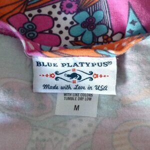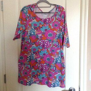 Blue Platypus Grooviest Blooms Women's Tunic Pink Aqua Size M Hippie 60's Cute