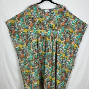 A gorgeous colourful printed fabric featuring mushrooms, snails, and flowers . The fabric is known as “Mushrooms & Snails” . Part of the Blue Platypus collection.