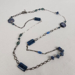 Blue Polished Natural Stone Black Chain Toggle Necklace