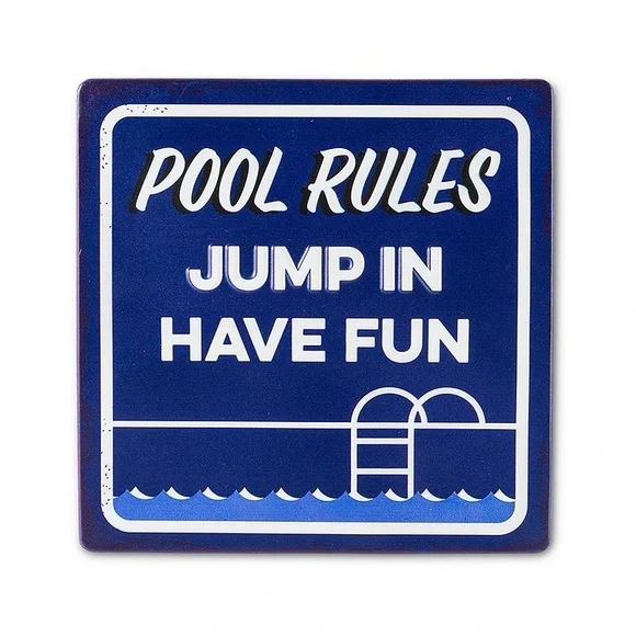 Blue Pool Rules Jump In Sign 10” Square - Metal