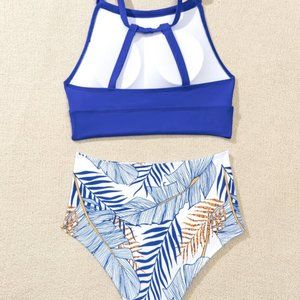 Blue Print High Waisted 2pc Bikini Swimsuit Bathing Suit