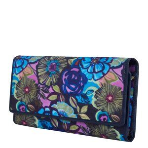 Secure Flap Closure: The wallet opens with a flap and features an adjustable snap closure to keep your items secure.