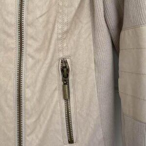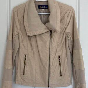 Blue Rain Beige Jacket Size Medium - has a faux suede look, 100% polyester and is dry clean only. Only selling because it no longer fits me.
