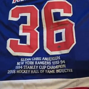 Autographed Glenn Anderson Rangers Jersey nicely stitched also has accomplishments stitched below number on jersey one if a kind.