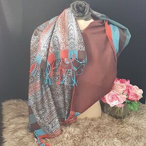 Blue & Red Striped Pashmina Shoulder Wrap with Silver Accents Pashmina & Silk