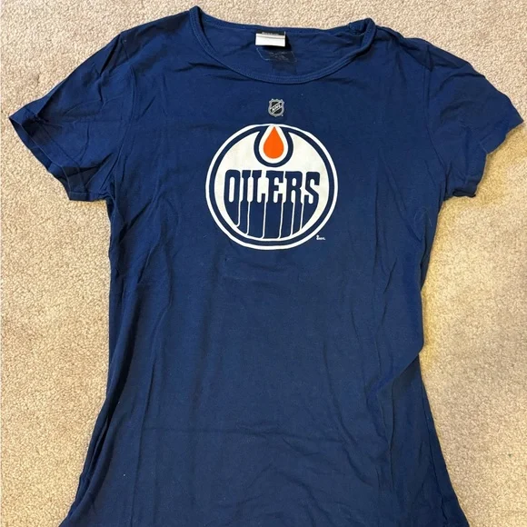 Blue t-shirt featuring the Oilers logo and #4 Taylor Hall.