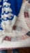 Stay cozy and festive with this blue reindeer sweater. Perfect for holiday gatherings and winter outings. No tag but my guess is 100% acrylic. I am a small and this fits with slightly slouch because of the band at the bottom. Very cute for Christmas and holiday gatherings.