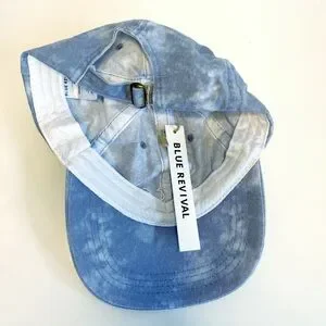 Stylish blue tie dye baseball cap with wave design from Blue Revival. Unstructured hat, 100% cotton, with adjustable back closure.