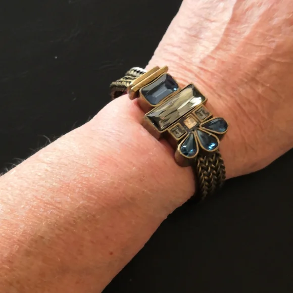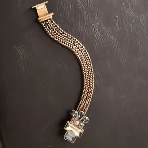 Beautiful bracelet with copper triple chain Blue and quartz coloured rhinestones. Magnetic closure 7. 25 inches long