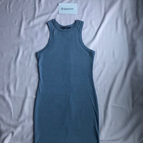 Blue Ribbed Bodycon Dress