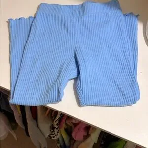 Stylish light blue leggings. Soft ribbed texture. Ideal for everyday wear. One small spot that I couldn’t get out in the wash.