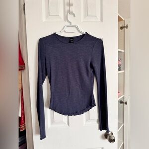 Blue Ribbed Long Sleeve Top