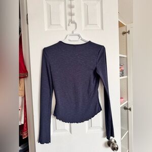 dusty blue 2010βs style tumblr-esque ribbed semi-sheer long-sleeve topπ±π