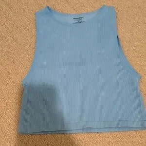 Stay stylish and comfortable with this blue ribbed tank top. Perfect for casual outings or layering.