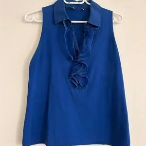 Blue Ruffled Sleeveless Top