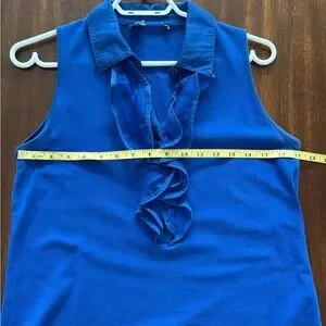 Elevate your style with this chic blue sleeveless top. Featuring elegant ruffles, it's perfect for any occasion. Cotton spandex