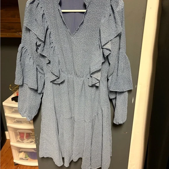 Elegant blue dress with ruffled details, perfect for any occasion.