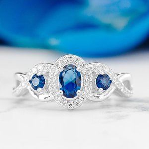 Blue Sapphire Gemstone ring, size 7, 925 Sterling Silver Charmed Aroma