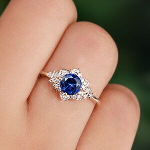 Blue Sapphire floral ring - September Birthstone Liz Halston Jewelry