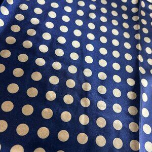 Soft silky navy blue satin with gold polka dota
