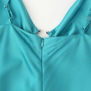 Blue Satin O-Ring Front Evening Party Cocktail Maxi Dress M