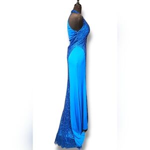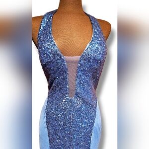 Blue Sequined floor-length Stretchy gown. Size M To L