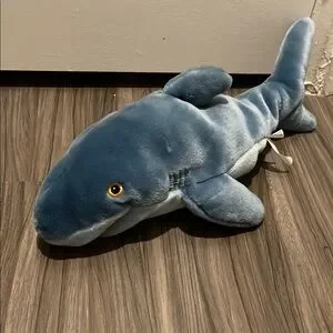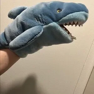 Soft and plush blue shark hand puppet. Perfect for imaginative play.
