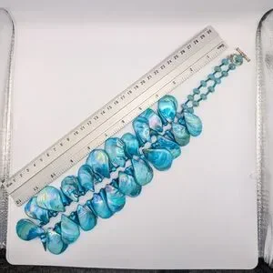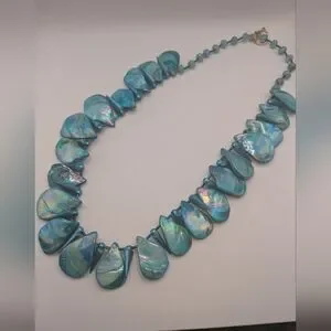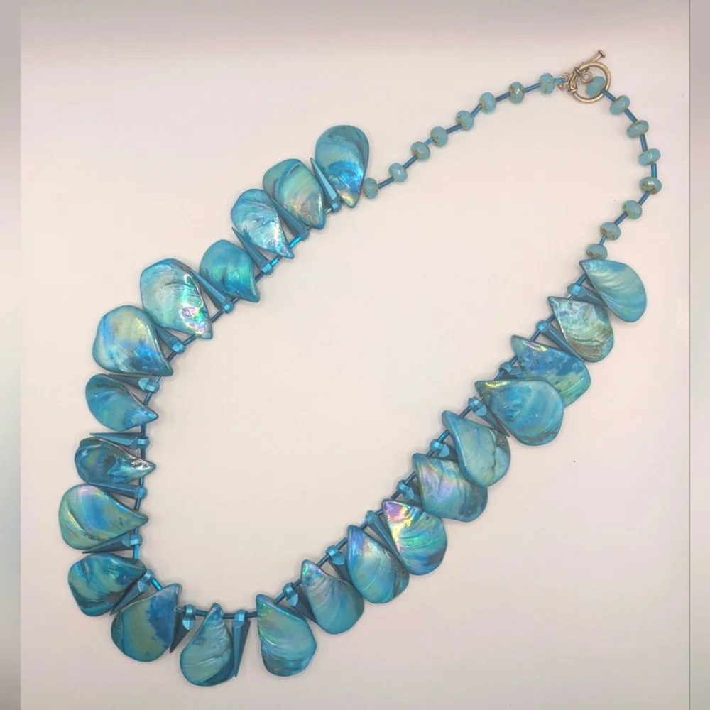 Elegant blue shell necklace perfect for any occasion. Add a touch of color to your outfit.