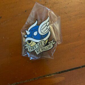 Blue shell pin from Mario kart. "They see me rollin'".