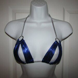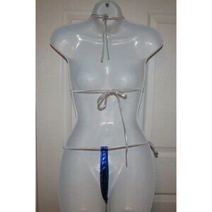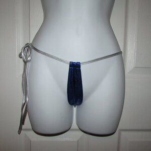 Blue Silver Metallic Micro Strappy String Thong Bikini - NEW
