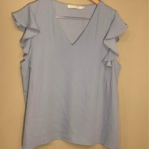 Light blue sleeveless (frilly) top - L