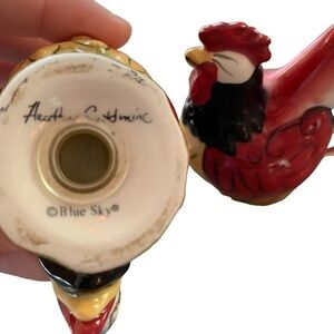 Fabulous Blue Sky Clayworks Heather Goldminc signed handmade rooster salt and pepper shaker set in great condition. Slightest wear on top of one of the pieces (see photo). A fun addition to your dining tablescape!