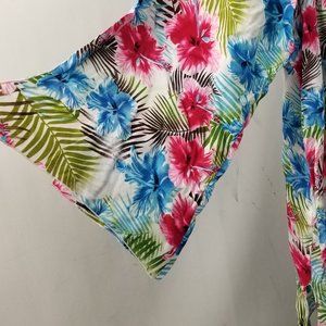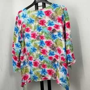 Blue Sky Tropical Floral Summer Blouse, Size 1X