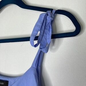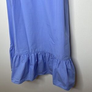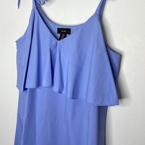 Elegant blue sleeveless dress with charming ruffle details. Perfect for any occasion.