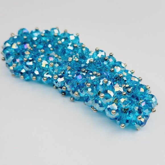 Blue Sparkling Glass Beads Elastic Stretch Bling Bracelet