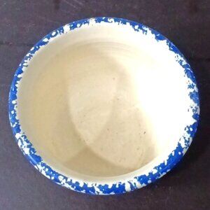 Blue Spongeware Popcorn Bowl w/ "for Sharing' Written on Bowl 6.5" Diameter
