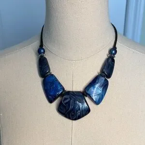 This elegant blue statement necklace adds a touch of sophistication to any outfit. Perfect for any occasion.