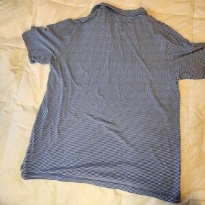 Elevate your casual wardrobe with this stylish blue striped Peter Millar cotton/silk polo shirt. Perfect for any occasion, it offers comfort and a classic look. Size XL. Used but still in great condition (see last pic for up close fabric condition).