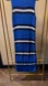 Elegant blue midi dress with bold black and white stripes. Sleeveless design for a modern look. Perfect for versatile styling.