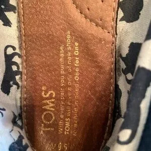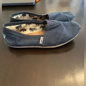 Women’s blue TOMS. Size is worn off (see photo). Looks like 9.5 but fit like 8.5 so I think part of the 8 has worn away.