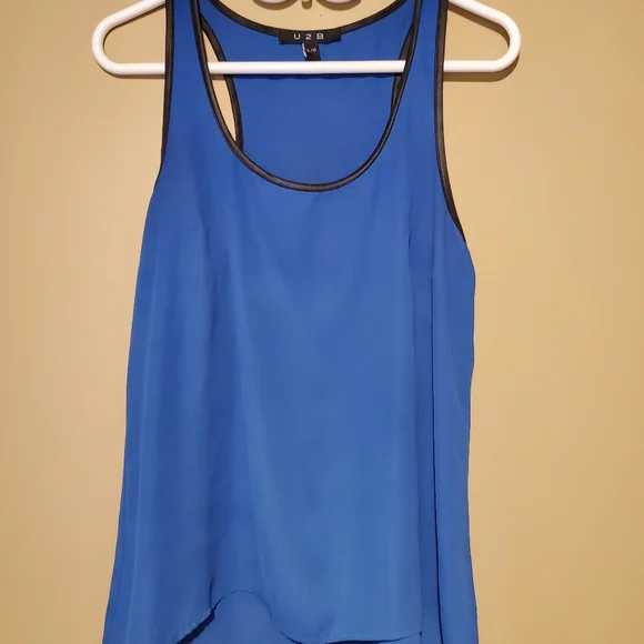 💫Free with purchase just add to your bag. Pretty blue tank with black accent. Size large. Good used condition. U2B brand
