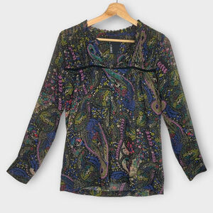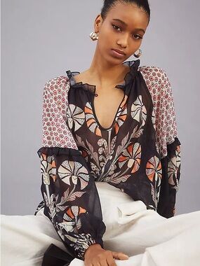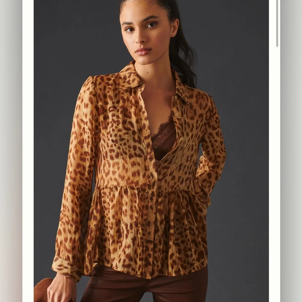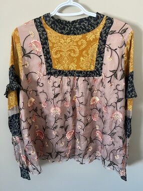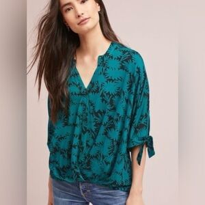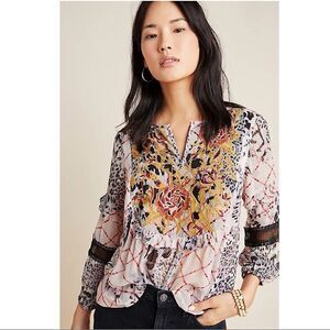 Blue Tassel Anthropologie Silk Peplum Blouse