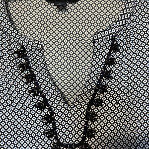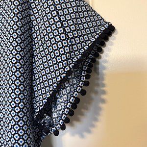 Blue & white Tommy Hilfiger Blouse - with V-Neck, short sleeves, fancy detailing on front and sleeves, a bit of gathering/ruching on front