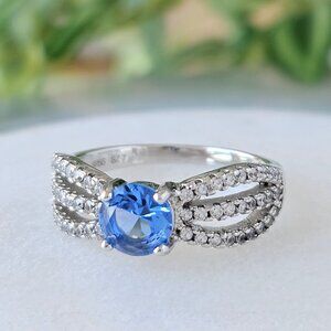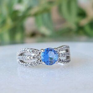A beautiful and rare Blue Topaz Gemstone ring from Charmed Aroma. Made with solid 925 Sterling Silver. This ring is very sturdy and well made. This design was one of the more rare rings, it's beautiful in person.