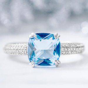 A beautiful and RARE Blue Topaz Gemstone ring from Charmed Aroma. Made with solid 925 Sterling Silver. This ring is very sturdy and well made.