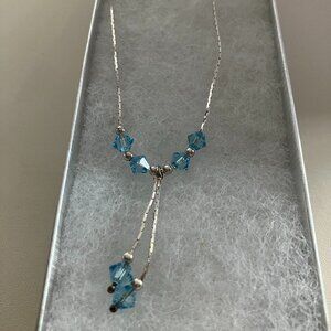 Blue Topaz Y Necklace 15.5” 925 Sterling Silver