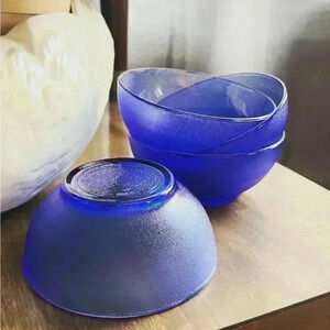 Blue Translucent/ textures Bowl Brazil vintage set of 4.