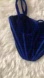 Beautiful corset top that is a stunning blue colour. This corset is boned and features a milkmaid style tie at the top.